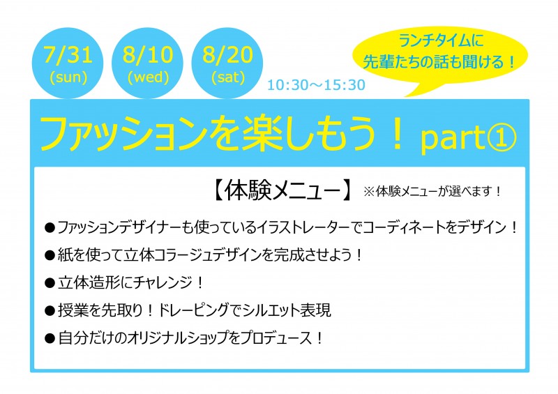 ファッション&ブライダル プロの技を体験しよう!!