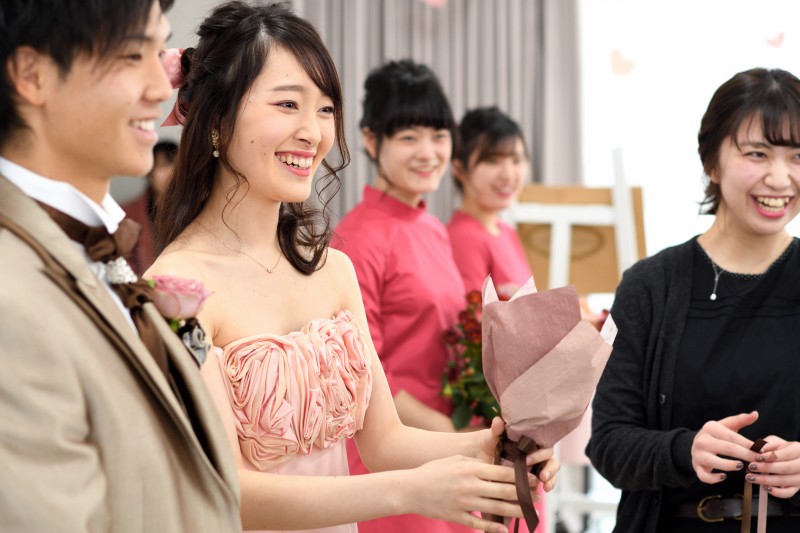 タイトルの通り、チョコレートをテーマに、プランニング企画から進行・演出、コーディネートや会場装飾など、結婚式に関わる全てを学生主体で実施した模擬人前挙式です