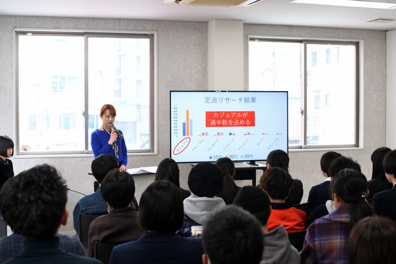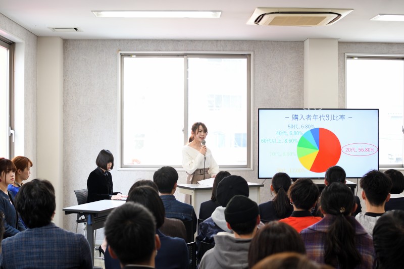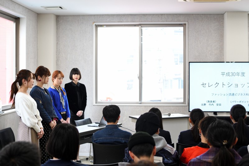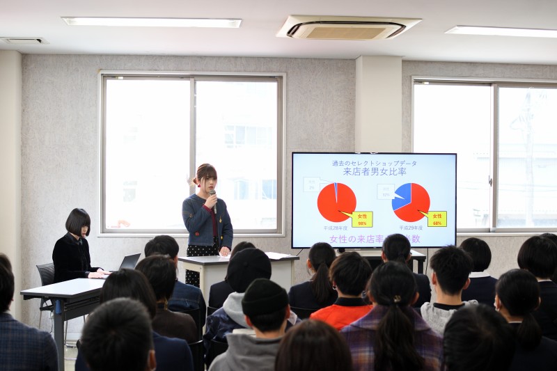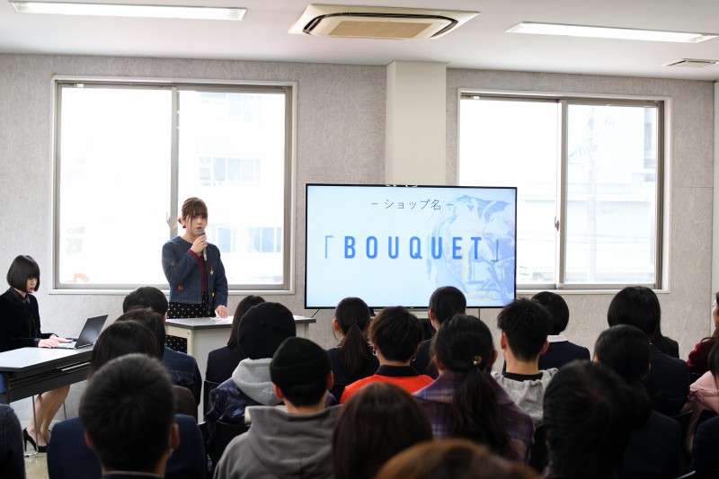オリジナルセレクトショップの商品取引、仕入れ、出店、販売までを学生自身で企画・運営し、2019年1月30日~2月4日の期間に熊本PARCOにて出店した『Bouquet ~Hiro’s select』の企画から販売に至るまでのプレゼンテーションを行いました。
