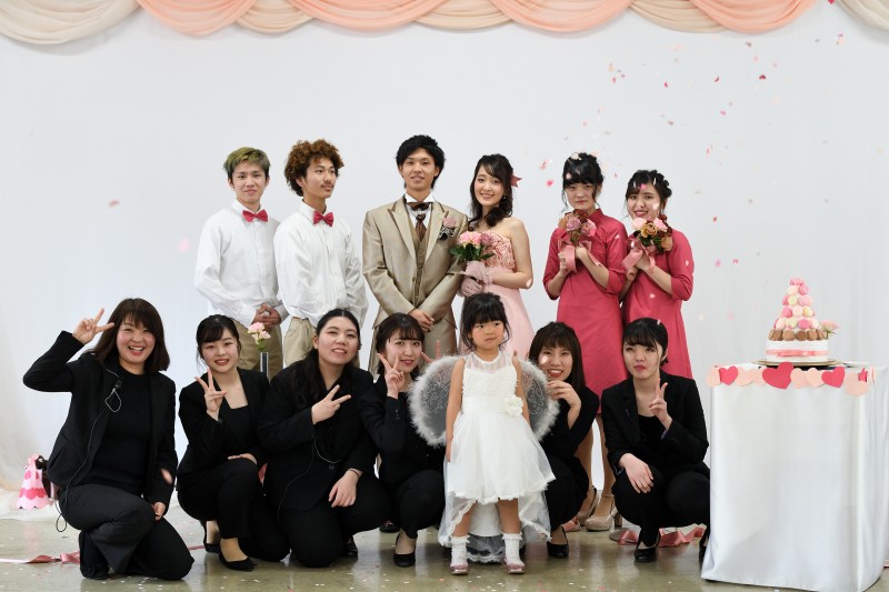 本校で学んだ、ブライダルの幅広い知識と技術を基にした、オリジナルの模擬人前挙式を行いました。