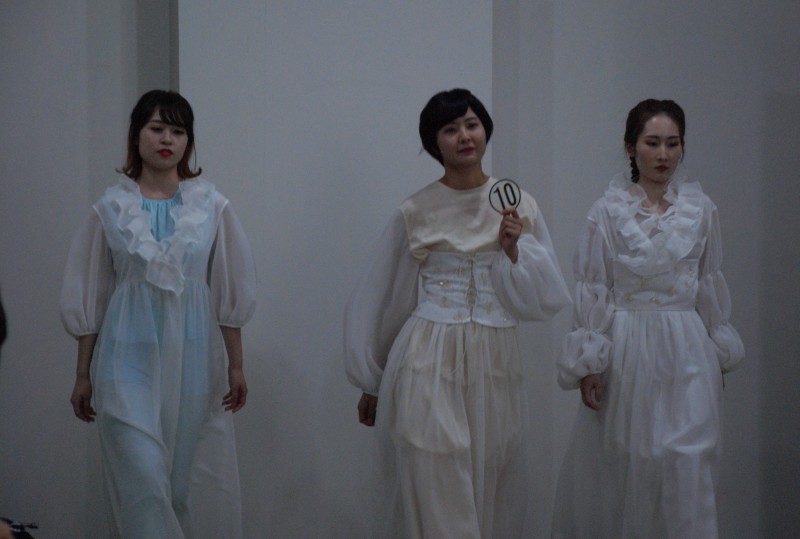 「毎年このサマーファッションコンテストの審査をさせて頂いていて、今年の作品は選ぶのが難しかった。どれも平均的で甲乙つけがたい。どれも良い。でも裏を返すと、ずば抜けて良い作品がなかったということ。今回の『アート』というテーマで、もっと大胆な作品、服っぽくないアート的な作品があってもいいのかなと。あと僕自身、装苑賞や新人ファッション大賞コンテストの審査をしているので、みなさんもそういう大きなコンテストに応募してきて、全国の学生、世界の学生と競い合って自分の作品を見てもらうことで、もっと自分の実力も付き学生の中でも刺激になるので、積極的にそういうコンテストに挑戦してください。」と総評を頂きました。